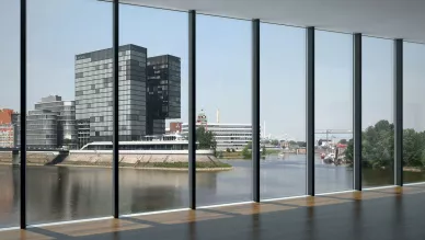 - Встраивание автоматизированных верхнеподвесных или параллельно-отставных окон Schüco AWS 114: создание крупноформатных оконных конструкций для решения стандартных задач или дымо- и теплоотвода, с подключением к системе управления зданием